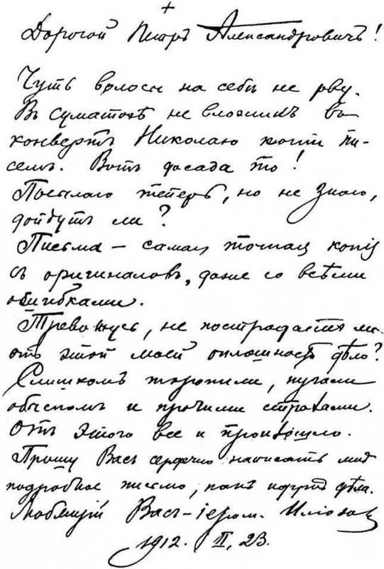 Письмо князя Ф. Юсупова царице на следующий день после убийства Распутина, в котором он подтверждает свою невиновность.