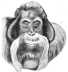 Здесь, сидя в своей просторной удобной клетке, он вел себя тихо и скромно. Невозмутимо спокойный, задумчивый и очень медлительный во всех своих движениях, он с комической серьезностью развлекался, чем попало. То он целый час прилаживает себе на голову холщевый мешок в виде чалмы, го вместо шляпы старается удержать на голове жестяной тазик из-под молока, то медленно пройдет на средину клетки и долго качается на свешивающемся с потолка канате, то разбирает руками солому и, неизвестно зачем, сыплет ее себе на темя. С одной стороны через решетку клетки глазеет на него публика, с другой стороны из соседней клетки таращат на него глаза и возбужденно ухают молодые шимпанзе; но Бэзэк с презрительным равнодушием косится и на тех, и на других. Среди людей Бэзэк различал лишь немногих своих знакомых и сторожа Либетрея, заслуженного специалиста по воспитанию человекообразных обезьян. С знакомыми своими Безек здоровался, протягивая свою длиннейшую, лохматую руку и делая приветливо гримасы! то раскрывая рот в широкую улыбку, то вытягивая вперед сложенные в трубку губы. Последнюю гримасу, очень характерную для шимпанзе и оранг-утанов, московская специалистка по зоо-психологии Н. Н. Ладыгина-Котс[8]) считает признаком волнения и беспокойства; но Бэзэк строил иногда эту потешную гримасу и в самом благодушном, спокойном настроении. Все тело Бэзэка было покрыто длинным темно-рыжим мехом, голое лицо было темно-серое с синеватым отливом; только веки глаз были светло-телесного цвета. Поэтому, когда Бэзэк закрывал глаза, лицо его принимало чрезвычайно странный вид. Ел Бэзэк очень умеренно и за едой был до-нельзя медлителен. Дадут ему, например, кисточку винограда, он медленно, лениво оторвет ягоду, медленно ее осмотрит, обнюхает, медленно положит в рот; долго, лениво жует и, наконец, аккуратно выплюнет кожуру и косточки. Можно было соскучиться, пока этот здоровый молодой малый с’едал три ягоды. Однажды с Бэззком случилась беда: он махнул своей могучей рукой с такой силой, что нечаянно разбил толстое стекло своей клетки. Получившаяся трещина его очень смутила и заинтересовала. Пока не вставили нового стекла, он целый день с сосредоточенным, серьезным вниманием смотрел на трещину и тыкал в нее пальцем. На задумчивом лице его было написано полное недоумение. Вялый, но приятный своим спокойным добродушием, Бэзэк, не смотря на тщательный уход, погиб в конце прошлого лета от воспаления легких. Месяца за два до гибели Бэзэка в Берлин была привезена очень интересная пара оранг-утанов, живущая в саду до сих пор. Родом они, как и Бэзэк, с Суматры[9]). Их рыжий мех имеет более яркую и светлую окраску, чем это было у Бэзэка. Они вполне взрослые самец и самка. Его зовут «Хассан», или сокращенно «Хассо», ее — «Клеопатра», или «Клео». Клеопатра очень мало заслуживает быть тезкой прославленной красавицы; но она все же поистине красавица в сравнении с Хассо. Тот прямо — чудовище, жуткое страшилище, особенно отвратительное и отталкивающее своим человекоподобием. По мнению директора сада, Хассану уже за двадцать лет. В этом зрелом возрасте самцы орангутанов сильно отличаются от самок и молодых самцов не только большим ростом и большей силой, но и формой головы.