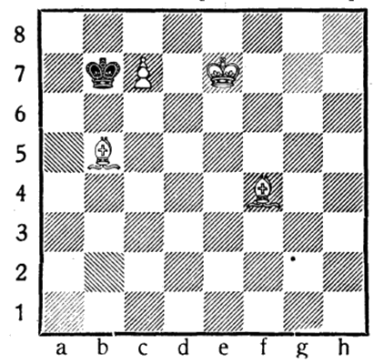 Задача Генриха Мейера О. Блюменталь: «Сборник миниатюр»[10]) Белые дают мат в 2 хода.