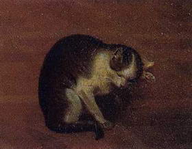 При том, что пол сценически приподнят, возникает впечатление тесного пространства, вроде корабельной каюты, в минуту, когда судно вдруг дает сильный крен, так что весь хлам, наполняющий этот закуток, съезжает к первому плану. Ни одна вещь не оставлена в нормальном состоянии. Это подчеркнуто тем, как неправдоподобным образом «зависают» щипцы на ребре стола, как если бы был схвачен момент, когда крышка стола только что вдруг с грохотом опустилась. На полу - хвосты от селедок, опрокинутые бутыли говорят о том, что в них не осталось ни капли, сломан стул, разорваны струны гитары, и даже кошка на кресле словно стремится внести свою лепту в этот хаос, раздирая когтями обивку. Федотов заставляет не только наблюдать, но даже слышать эти диссонансы, какофонию, неблагозвучие: хлопнула крышка стола, звякают бутылки, зазвенели струны, урчит кошка, с треском разрывая ткань.
