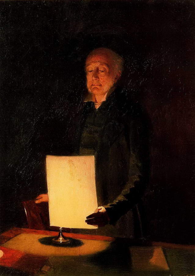 Особенности позднего творчества Федотова, отличные от предшествующего, определились во Вдовушке. Во-первых, обозначилась иная сюжетная коллизия - жизнь, придвинутая к порогу смерти, небытия: беременная вдовушка между смертью мужа и рождением ребенка. Во-вторых, сознание неинтересное™ этой новой сюжетики публике, возлюбившей художника за совсем иное, и,следовательно, сознание,что новые пьесы играются перед пустым зрительным залом и прежние средства уловления зрительского внимания не нужны. Картины создаются как бы для себя. Но это значит, что они адресуются куда-то за пределы настоящего времени - в вечность. Коли так, то живопись начинает изображать не то, что творится вовне, а то, что происходит во внутреннем мире, - не видимое, а ощущаемое, кажущееся. Главную роль в сотворении такого образа видимости играет свеча - непременный атрибут, начиная с Вдовушки, всех поздних произведений Федотова. Ограничивая поле зрения, свеча интимизирует ощущение пространственной среды. Другое свойство свечи - делать зрительно осязаемым окружающий сумрак. То есть буквально и метафорически пододвигать свет к границе тьмы, зримое к черте незримого, бытие к порогу небытия. Наконец, со свечой неотъемлемо связано ощущение недолговечности вызываемого ею к жизни мира и подвластности ее света превратностям случая. В силу этого она обладает способностью делать картину зримой реальности призрачной. Иначе говоря, свеча - это не просто предмет среди предметов, это метафора. Апофеозом этой метафорической поэтики стала картина Игроки (1851-1852).