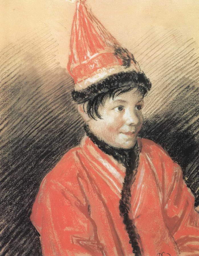 Или Калмычка Баяуста. Обычай держать в доме арапов, карликов шел еще от допетровского времени, оттуда же и мода на калмыков. Баяуста, как следует из надписи на обороте портрета, отбивала в церкви земные поклоны вместо своей барыни, А.С. Олениной. Или другой пример, в строке Пушкина: «...Желай мне здравия, калмык!» - из послания Никите Всеволожскому, у которого на домашних вечерах в молодежно-мужском обществе, если кто-то произносил непечатное слово, слуга хозяина - мальчик-калмык подносил ему бокал со словами: «Здравия желаю!». Вглядываясь в портрет, так и чувствуешь, слышишь, как барыня говорит художнику: «Нарисуй мою девчонку», а мажорный колорит красной пастели в цвете «национального» наряда, повадка раскованной,обаятельно-лукавой «шутихи», явно любимицы в доме, чуть смущенной под взглядом живописца, убеждают, что Кипренский с непреложностью постоянно бодрствующего художественного инстинкта, без всяких забот и деклараций о том,что и «простой» человек «чувствовать умеет», непринужденно и артистично чертит портрет, предвкушая возгласы - «ах, как похоже! ну, просто живая...» Именно в графических портретах особенно разнообразно представлена тема юности, совершенно иначе прозвучавшая у Кипренского. В романтизме детство и юность приобрели статус самостоятельных миров, независимых и не обязанных, как то было в XVIII веке, соизмерять себя с «взрослостью» как нормой. Это было одно из открытий и завоеваний романтизма. У Кипренского в этой теме первенствует портрет Челищева. Открытость «всем впечатленьям бытия» в случае детской и юношеской модели есть сама сущность, смысл существования. Менялся стиль рисования от десятых к двадцатым годам, спокойнее и беспристрастнее становился взгляд на модель, соотносительно тому, как остывал в самом художнике энтузиазм молодости, но неизменно сохранялись пленительные приметы отзывчивости, восприимчивости юношеской натуры, начиная с портрета Наташи Кочубей, кончая Портретом неизвестного (Из семьи Орловых-Давыдовых) 1828 года.