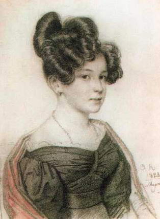 Портрет Анны Алексеевны Олениной. 1828. Рисунок Государственная Третьяковская галерея, Москва