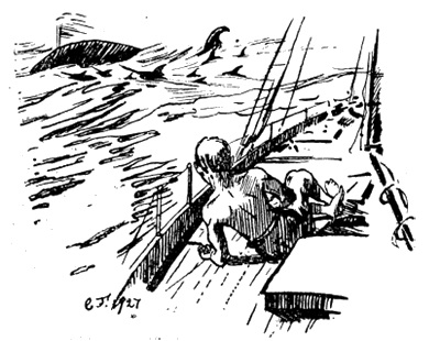 Лежа на палубе, я видел, как огромный кит, преследуемый нарвалами, быстро проплыл мимо лодки.