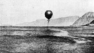 После неудачного плавания Нансена на северный полюс, стало ясно, что на корабле достичь полюса нельзя, и тогда зародилась новая смелая идея — отправиться на полюс на воздушном шаре. Эта мысль пришла 30 лет назад шведскому воздухоплавателю Соломону-Августу Андре. Охваченной этой идеей, Андре энергично принялся за ее осуществление. Он представил шведской Академии Наук детально разработанный план, и для экспедиции были собраны необходимые средства. По чертежам Андре на заводе Ляшамбр был построен из тройной шелковой тафты воздушный шар, вместимостью в 4 500 куб. метров. Шар со всеми припасами был отвезен летом 1896 г. на Шпицберген, откуда Андре и думал начать путешествие. Но летом 1896 г. полет по многим причинам не состоялся и был отложен до 1897 г. В мае 1897 г. Андре вместе с двумя спутниками— Стринбергом, молодым шведским ученым, и Френкелем — студентом-фотографом, отправились на Шпицберген. Для передачи сообщений с аэростата они взяли с собой несколько почтовых голубей и двенадцать пробковых буйков (поплавков), внутри которых были устроены непроницаемые камеры для писем. Буйки, окрашенные в желтый и красный цвета, должны были издалека бросаться в глаза на поверхности моря и льда. Андре захватил провизии на четыре месяца, складную брезентовую лодку, лыжи и сани. Общая грузоподъемность шара была 1 700 килограмм. Шар при нормальных условиях мог продержаться в воздухе от 30 до 35 дней. За это время Андре надеялся добраться до обитаемых мест Сибири или Америки. 11 июля 1897 г. все приготовления были закончены, и в этот день, при благоприятном южном ветре, шар поднялся на воздух, унося в неизвестную даль троих смельчаков. Первоначально шар направился прямо на север. Он летел со скоростью 30 километров в час. Через несколько минут шар исчез в голубом просторе северного неба.