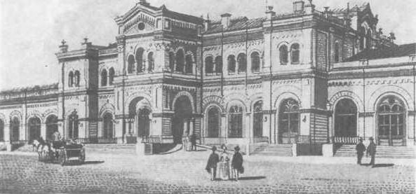 Первый пассажирский поезд на харьковском вокзале. 1869 г.