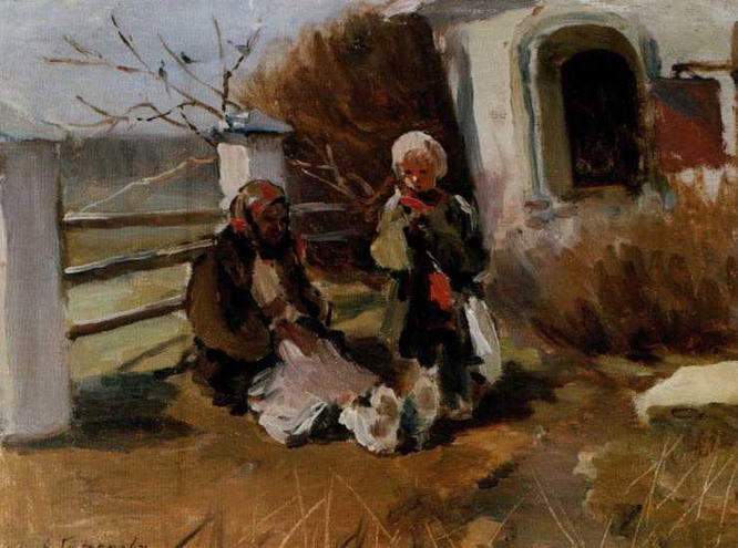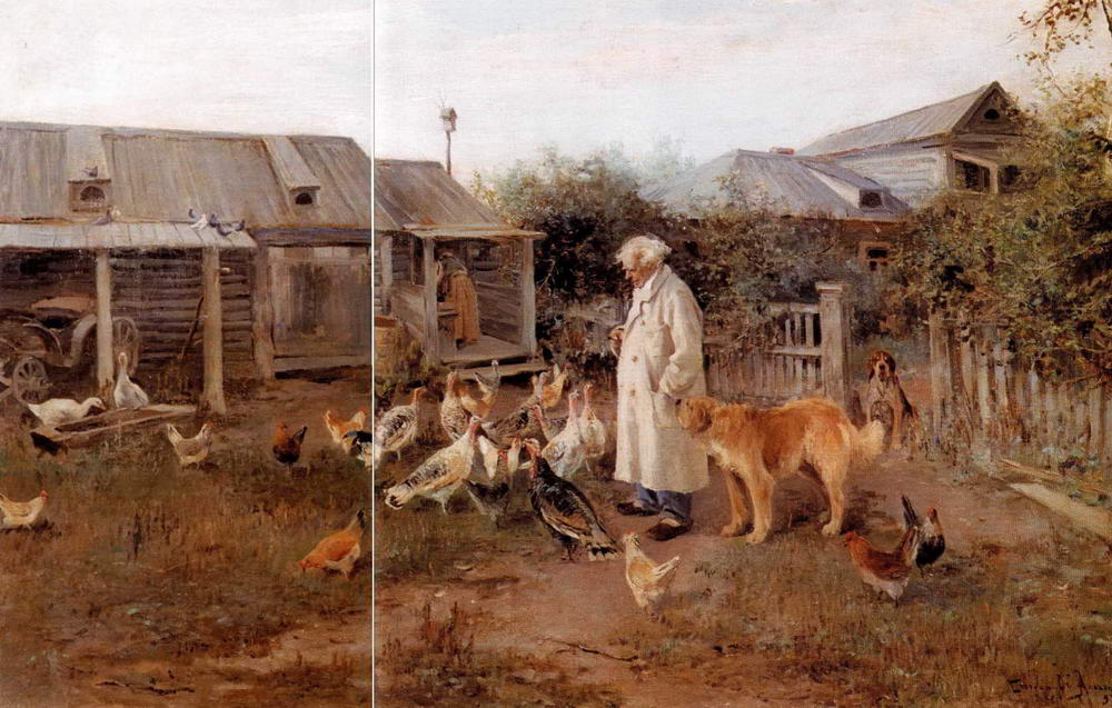 О произведениях Степанова конца 1880-1890-х годов хочется говорить именно как о повестях, воплощенных в образах живописи. Замыслы художника раскрываются в фабульных сюжетах, бытовые детали органически вплетаются в ткань повествования, являясь очень характерными и для Степа- нова-пейзажиста, и для Степано- ва-анималиста. Стасов укорял Степанова в том, что все у него «немножко тускло», «как всегда», и даже в том, что в художественном отношении его новая картина Утренний привет «не Бог весть что», хотя и находил, что в содержании и образах этой картины «все прекрасно, полно жизненной правды и юмора». Картина Утренний привет, написанная с тихой и ласковой улыбкой, несомненно, продолжает традицию, заложенную в русской живописи знаменитыми картинами Поленова Московский дворик и Бабушкин сад. В Утреннем привете Степанов построил сюжет как сценку, изображающую небольшое усадебное хозяйство и его помещика, небогатого владельца мизерных угодий. Между прочим, полотно соединяет в себе и жанр, и портрет: старик, кормящий кур, нарисован с тестя художника Н.В. Медынцева. Картина написана со свойственной Степанову мягкостью и теплотой, в ней есть та задушевная интонация, по которой можно отличить Степанова от всякого другого художника. Картина поражает удивительной верностью. Точность в изображении деталей и мелочей здесь тоже почти фотографическая, как и во всех произведениях Степанова. Но порой именно в этой скрупулезной точности отображения того или иного момента жизни заключен большой подвох для многих художников, ибо фотография или отражение в зеркале - далеко еще не художественные произведения. Если бы и то и другое было художественным произведением, мы могли бы довольствоваться только фотографиями и хорошими зеркалами. Нет, не то требуется от художника, не просто фотографическая верность, не механическая точность, а что-то другое, больше, шире и глубже. Истинный художник, такой как Алексей Степанов, не может механически отражать действительность, в произведении непременно будет виден он сам, он отразится невольно, выскажется всеми своими взглядами, своим характером. В старину сказали бы, что художник должен смотреть на жизненные сцены глазами телесными, а сверх того, еще и глазами души, оком духовным. Именно так смотрит Степанов на мир. Прекрасно написанная, простая и милая картина сразу же понравилась всем: и передвижникам, и академистам. Выставленный на XXV выставке передвижников и на XXIV выставке Академии, Утренний привет был приобретен Академией художеств и в 1900 году послан на Всемирную выставку в Париж, а в 1905 году Степанов получил за нее звание академика.