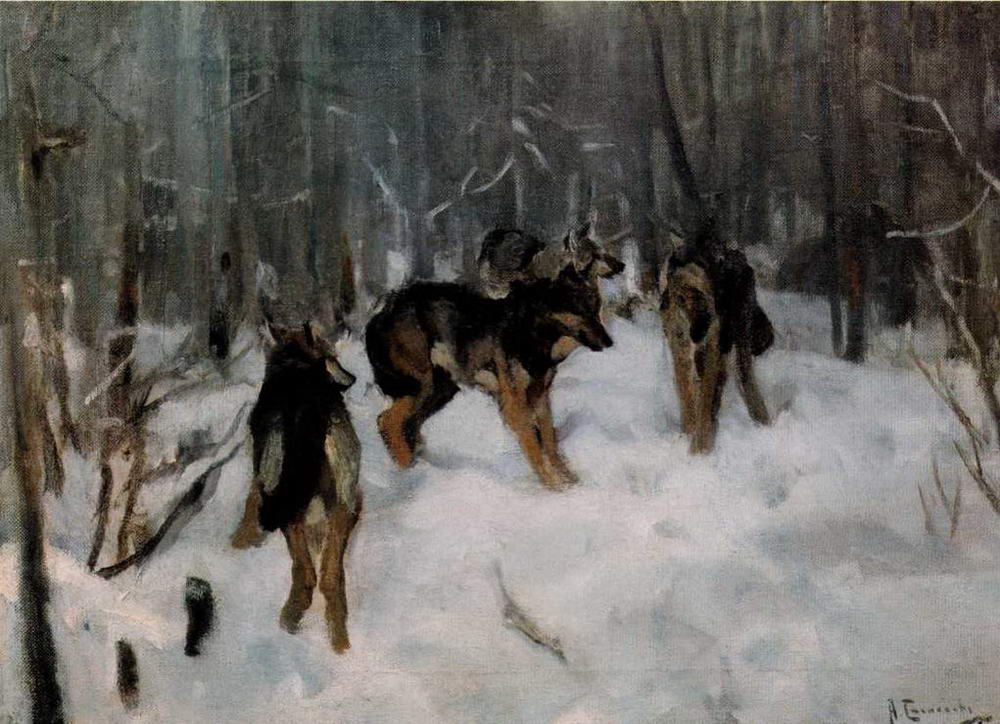 Волки в зимнем лесу. 1900-1910