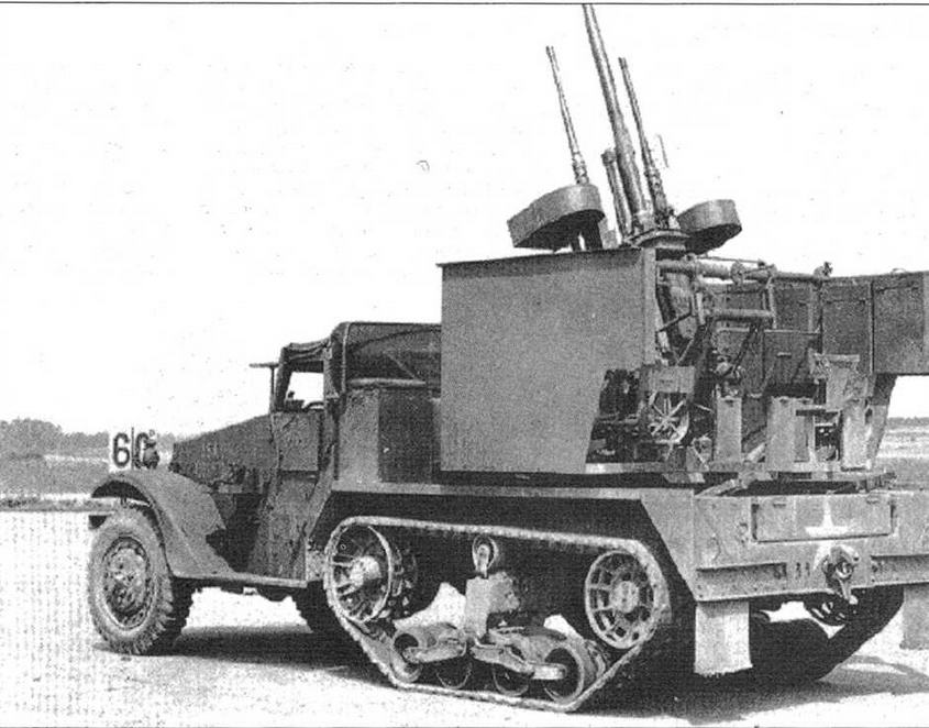 Зенитные самоходные установки М17 и М15А1 на базе полугусеничных бронетранспортёров стали единственным мобильным средством ПВО в танковых и механизированных частях Красной Армии. Использовали их также и для огневой поддержки войсковых подразделений. При необходимости поражали они и наземные цели прямой наводкой: огонь пушки и крупнокалиберных пулемётов был весьма эффективным. ЗСУ М17, созданная на базе бронетранспортёра М5, вооружалась четырьмя 12,7-мм пулемётами Browning М2НВ, установленными на турели Maxson с бронированным лафетом в кормовой части машины. Система управления огнём была электрифицирована, механизм управления допускал поворот в горизонтальной плоскости и одновременно наведение пулемётов на цель по вертикали; прицел — коллиматорный, марочный. Скорострельность достигала 2000 выстр./мин. Производство М17 началось в декабре 1943 г. и все выпущенные установки — 1000 единиц — отправили по ленд-лизу в СССР. ЗСУ М15А1 была спроектирована на базе бронетранспортёра M3А1. Она вооружалась 37-мм автоматической пушкой и двумя 12,7-мм пулемётами, смонтированными в общей строенной установке.