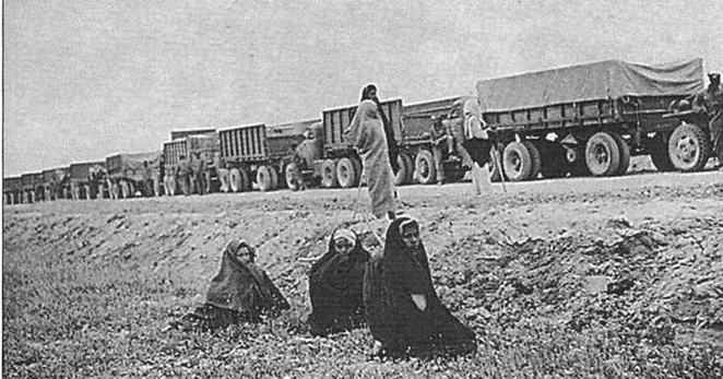 Южное направление поставок по ленд-лизу. Колонна грузовых автомобилей Studebaker проходит через Иран. 1942 г.