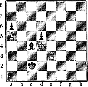 Нью-Йорк. Междунар. матч-турнир закончился полной победой чемпиона мира, разбившего всех своих противников и не получившего на протяжении всего состязания ни одного поражения (несмотря на то, что каждый с каждым из участников играл по 4 партии). Общие результаты таковы: I. Капабланка +14, II. Алехин 11½, III. Нимцович 10½, за призерами встали Видмар 10, Шпильман 8, Маршалл 6. 2-е Всес. соревнования профсоюзов, проведенные ВЦСПС с 18 по 31/III в Москве в Доме Союзов, закончились следующим образом: в главном турнире, в чемпионате профсоюзов СССР I приз и звание всес. чемпиона профсоюзов завоевал А. Ф. Ильин-Женевский (рабпрос, Ленинград) +8½, II — Н. Д. Григорьев (рабпрос, Москва) 8, III — Н. М. Зубарев (совторгслуж., Москва) 7, IV — Касперский (совторг., Минск), Рагозин (пищев., Л-д) и Тесленко (ж.-д., Харьков) по 6, далее — Глазачев (водник, Архангельск) и Лесман (металл., Л-д) по 5½, Баум (строит., М.) 4½, Фрейдберг (мет., Харьков) 3½, Семенов (химик, Л-д) 3 и Грязнов (текстильщ., Серпухов) 2½; в финале побочного турнира, где было 35 участников, игравших сначала в 5 группах, из 10-ти человек на первые места вышли Юрьев (текст., Л-д) +7, Панов (совторг., М.) и Шумилин (ж.-д. Хабаровск) по 6½, Жилин (совторт., Л-д) 5½ и Гоглидзе (совторг., Тифлис) 5. Совет шахсекций союзн. республик заседал в Москве с 28 по 31/III. Советом принят ряд важных решений по вопросам организационному, всес. квалификации и др. Совет признан высшим всес. шахм. органом, работающим от съезда до съезда (ближ. всес. шахсъезд решено созвать в Москве в августе тек. г.). Для текущей работы Советом выделено новое Исполбюро в составе: предс. Н. В. Крыленко, Отв. секр. В. Е. Еремеев, члены: С. С. Левман (ВЦСПС), т. Воронин (Украина), т. Шукевич-Третьяков (Белоруссия), Н. Д. Григорьев и В. Н. Руссо. МОСКВА. Bcec. чемпионат рабпроса дал победу Н. Д. Григорьеву +3, за которым встали В. А. Макогонов (Баку) 2½, Д. Д. Григоренко (Харьков), А. Ф. Ильин-Женевски (Л-д) и Н. И. Сивков (Курск) по 1½. В чемпионате Москвы, после ожесточенной борьбы, продолжавшейся 2 месяца, победа досталась мастеру Н. М. Зубареву, получившему т. о. звание чемпиона Москвы 1927 г.Решения для диаграмм из № 2