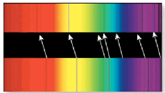 Сравнение спектра Солнца с тёмными линиями поглощения со спектром движущейся звезды. Смещение спектральных линий позволяет вычислить скорость звезды и направление её движения.