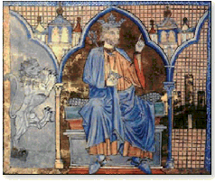 Первая страница латинского перевода «Альмагеста», сделанного Пурбахом и Региомонтаном. Книга издана в 1496 году в Венеции. Слева изображён Птолемей, справа — Региомонтан.