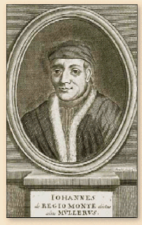 Региомонтан (Иоганн Мюллер) (1436- 1476) — немецкий астроном и математик. Вместе с Пурбахом перевёл на латынь «Альмагест» Птолемея. В 1474 году издал типографским способом и большим тиражом «Эфемериды…» — первые астрономические таблицы, основанные на теории Птолемея. Гравюра Ганса Брюля (1736-1809).
