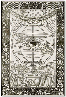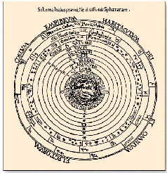 Изображение геоцентрической системы мира из книги Питера Апиана «Космография», Антверпен, 1524 год. Согласно Птолемею, в центре мира покоится Земля, а между Венерой и Марсом движется Солнце с периодом обращения 1 год.