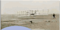 Первый полёт Орвилла Райта 17 декабря 1903 года на управляемом самолёте-этажерке, сконструированном им вместе с братом Уилбером.
