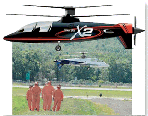 Скоростной экспериментальный вертолёт Х-2 компании И. И. Сикорс-кого развивает рекордную скорость — 460 км/ч.