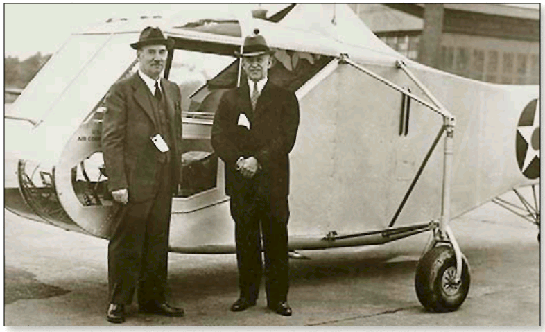 Геликоптер Сикорского S-47 стал первым в мире серийным вертолётом. На фото: слева — Игорь Сикорский, справа — Орвилл Райт, создатель первого самолёта. Фото 1942 года.