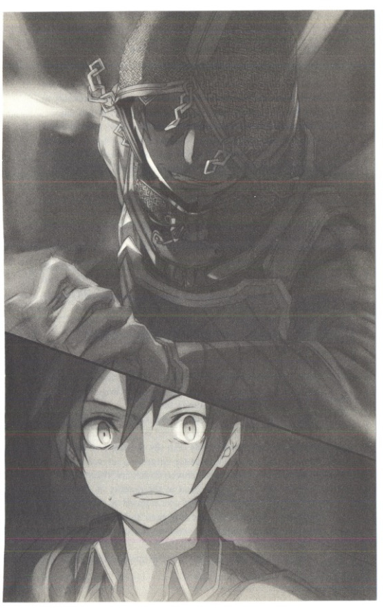 - Вот где начинается настоящий Sword Art Online. Я читал много интервью и статей в журналах об Акихико Каябе, человеке, который запер нас здесь. Он сказал, что термин Sword Art относится к свету и звуку, которые издают сталкивающиеся навыки мечей и это Концерт жизни и смерти. Я посмотрел через плечо на выражение лица фехтовальщицы Асуны. - ...Ой…