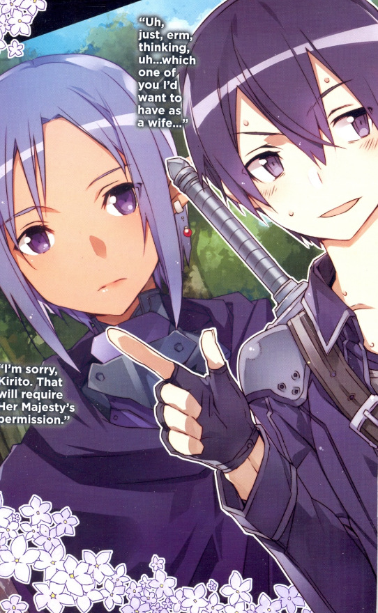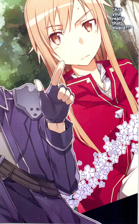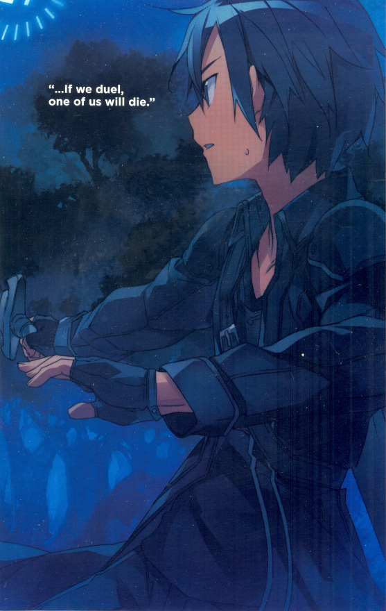 - Вот где начинается настоящий Sword Art Online. Я читал много интервью и статей в журналах об Акихико Каябе, человеке, который запер нас здесь. Он сказал, что термин Sword Art относится к свету и звуку, которые издают сталкивающиеся навыки мечей и это Концерт жизни и смерти. Я посмотрел через плечо на выражение лица фехтовальщицы Асуны. - ...Ой…