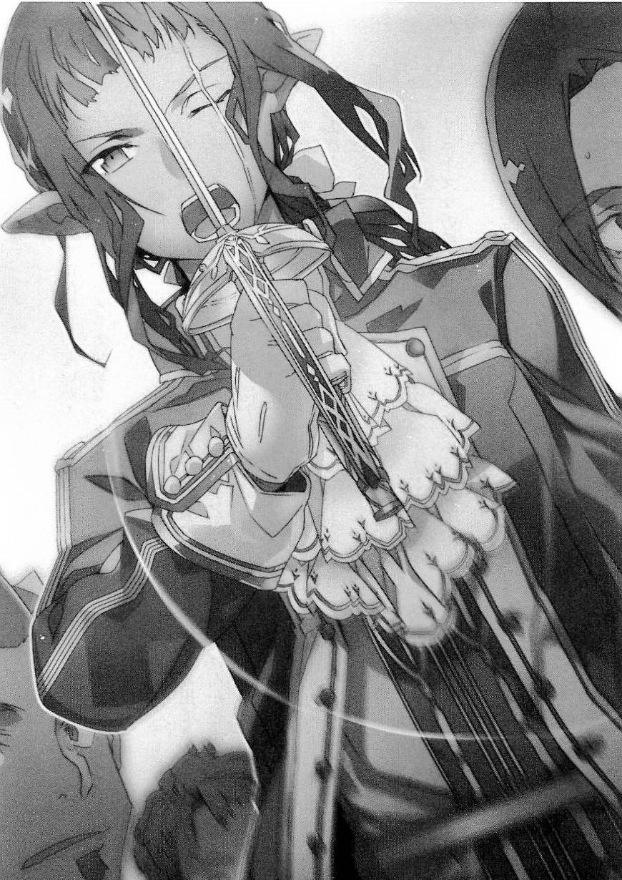 Учитывая, что это говорила Кизмель, чья любимая сестра была убита Лесными эльфами, я мог только молча кивнуть. Как будто ожидая этот жест, мой журнал квестов обновился и объявил, что были завершены квесты «Озерная крепость», и «Корабельщик», в результате чего было получено огромное количество опыта. Я закрыл меню, не зная, что чувствую на самом деле. Тем временем Асуна шепнула: