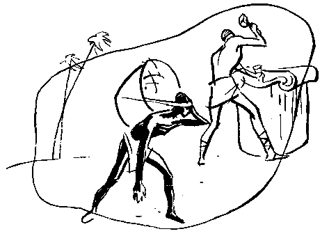 — Брысь! — директор хлопает по столу, и Петька, счастливый, вылетает за дверь.