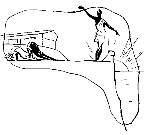 Когда у Юрки появлялось желание помечтать, он шел на пристань. Юрке всегда позарез нужны слушатели. Но слушатели тоже любят говорить о себе. Они только и ждут конца твоей фразы, чтобы вставить: «Ну, это что! А вот я… А вот у меня…» И хотя Юрка совершенно точно знает, что именно он — не собеседник! — сейчас может сказать самое главное, приходится уступать. Иначе — невежливо. А язык распухает от невысказанных слов. «Скучные человечки, — с тоской думает Юрка, — все о себе да о себе… Кому это интересно?» И бредет на пристань, к Павлу. Павел — странный. Иногда он такой взрослый, что к нему не подступишься, особенно на виду у людей. Юрка знает: Павел хочет казаться старше. Все, по мнению Юрки, хотят казаться старше, чем они есть на самом деле. Но в своей комнатке на дебаркадере Павел другой. Он показывает приемы борьбы «самбо» или поет песни под гитару. Его песни мало понятны Юрке: о девушках, ожидающих на берегу, или: