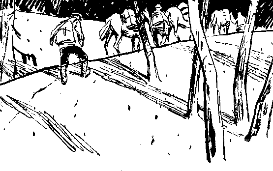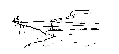 Мы подошли к берегу. Перевернутая ветка тащилась сзади.