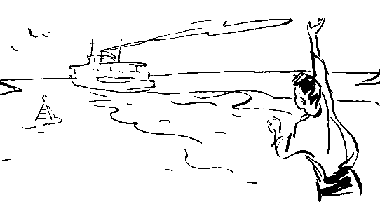 Матросы пристани посмеивались, видя, как он болтался в волну на плесе, вырабатывая устойчивость против морской болезни; А он, дождавшись сильного ветра, выходил снова.