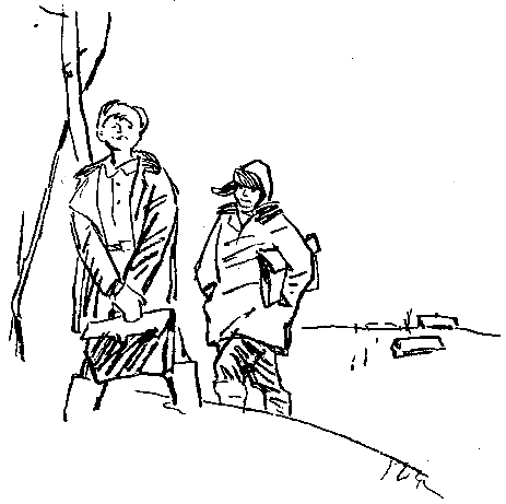 — Ну, школьники, — ответил мальчишка в тельняшке.