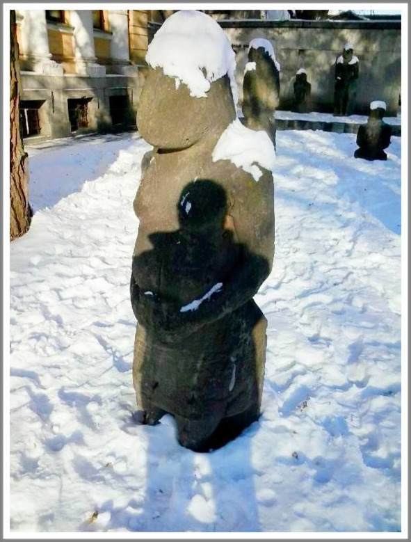 Значительную часть военной категории памятников — относящихся к войне с гитлеровцами, представляют скульптуры воинов — с автоматами, винтовками и… с венками. Причем некоторых воинов как будто бы забыли в почетном карауле.