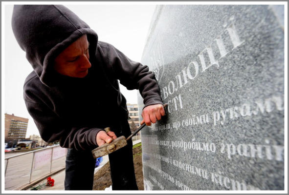 Исчезновение серпа и молота, отметила тогда местная пресса, связано с исполнением закона Украины «Об осуждении коммунистического и национал-социалистического тоталитарных режимов в Украине и запрете пропаганды их символики».