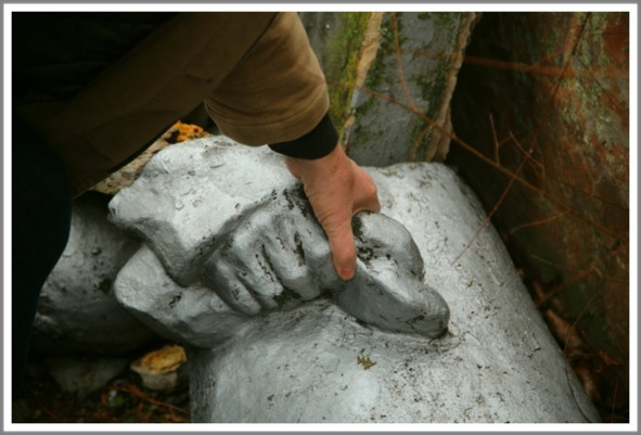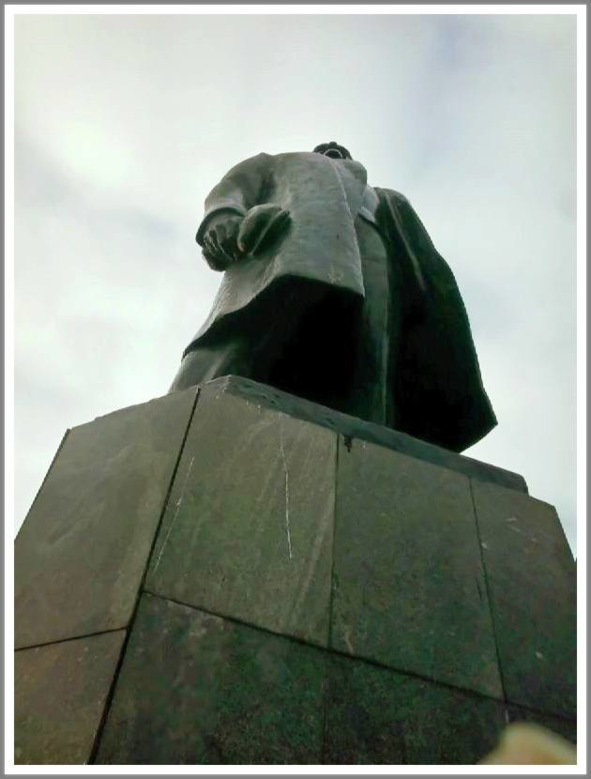 А еще, как выяснили мы, оказавшись с вождем лицом к лицу, при падении Ленин нос повредил и подбородок. В связи с чем кому-то из местных гончаров пришлось принял ненадолго на себя миссию… полубога: ему ж не для обычного человека глину пришлось замешивать, а для самого вождя.