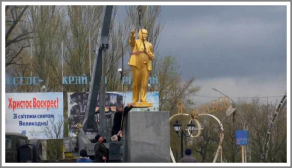 Самого большого Ленина свергали под крики «Слава Україні!»