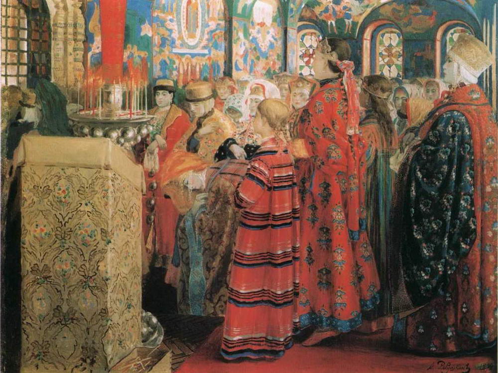 Русские женщины XVII столетия в церкви 1899