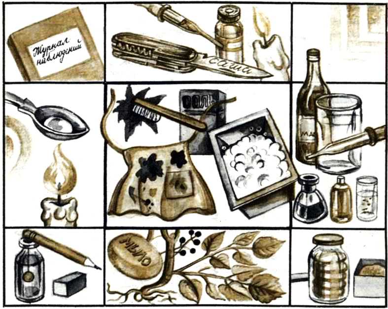 Дорогие родители! Возможно, вы несколько испугались, узнав, что вашим детям, таким еще, как вам кажется, маленьким, предлагают делать химические опыты. Ведь на уроках химии, говорят, то и дело либо гремит, либо дымит, либо сверкает… Пожалуйста, не бойтесь: ни греметь, ни дымить, ни сверкать не будет. Разве что изредка, самую малость и совсем безобидно. Это наверняка. Правда, при условии, что все будет проделано в точности так, как написано в этой книжке. Но не лучше ли вообще обойтись без этой самой химии? Что ж, попробуйте! Вот вы, уважаемая мама, добавляете в борщ немного кислоты, и он делается огненно-красным — разве это не химия? Или вы, дорогой папа, проявляете в ванной фотопленку — разве и это не химия? Она повсюду, и никуда от нее не деться. Именно к химии поучительной и полезной нам и хотелось бы пристрастить вашего ребенка — чтобы он кое-чему научился, чтобы не устраивал со скуки никому не нужные взрывы. Все опыты должны проходить спокойно и безопасно. Мы постараемся обойтись без едких веществ и неприятных запахов, будем своевременно напоминать об осторожности. Это скорее задача автора. А вы, дорогие мамы и папы, помогите, пожалуйста, вашему ребенку: найдите подходящее место для занятий, светлое и удобное, накройте стол клеенкой или пленкой, чтобы его случайно не попортили во время опытов, подыщите старый фартук и несколько склянок разной формы и величины. Вот, собственно, и все, что понадобится на первых порах. И, конечно, совсем не помешает, если вы иногда будете интересоваться: что там в этих склянках? На всякий случай…