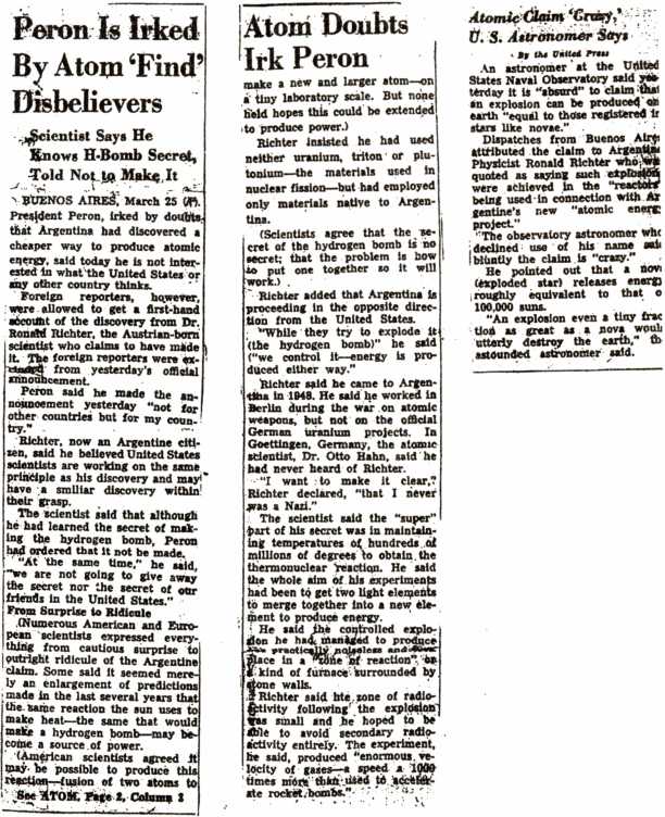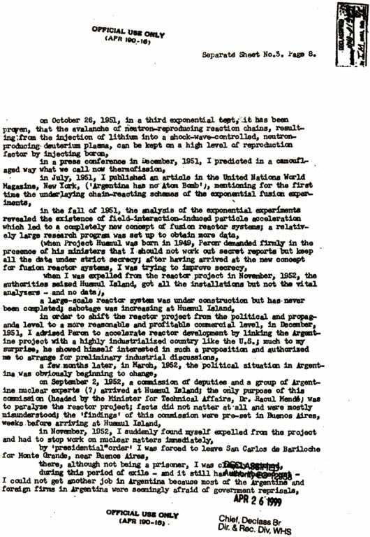Dr. Jose A. Balseiro, «Report About the Experiments of Dr. R. Richter, according to what was Witnessed by Me During the Visit made to the Atomic Energy plant at Isla Huemul, from 5 to 8 September 1952», www.ib.edu.ar/informes-huemul/reports-heumul-principal.html, p. 5, курсив добавлен. (обратно)493
