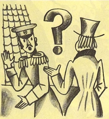 Рисунки М. БеломлинскогоЗа время своего царствования Павел I отдал немало нелепых приказаний. Вот два из них, отданные в 1800 году: „Полковник Тинков выключается из службы вследствие рапорта его о неотыскании им гарнизонного батальона, коего он был назначен командиром". „Умершему генералу Врангелю, в пример другим, объявить строжайший выговор".