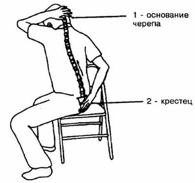 Выполнение упражнений на развитие позвоночного дыхания позволяет расслабить позвоночный столб, одновременно усиливая деятельность копчикового и внутричерепного насосов и стимулируя работу надпочечников и вилочковой железы. Эти упражнения также способствуют расслаблению мышц спины, что позволяет хорошо чувствовать себя даже при длительном сохранении сидячего положения. Выполнять упражнения можно сидя или стоя (рис. А-4).