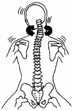Рис. А-7. Стимуляция деятельности внутричерепного насоса происходит при вдавливании шеи в плечи с одновременным легким сжиманием зубов.