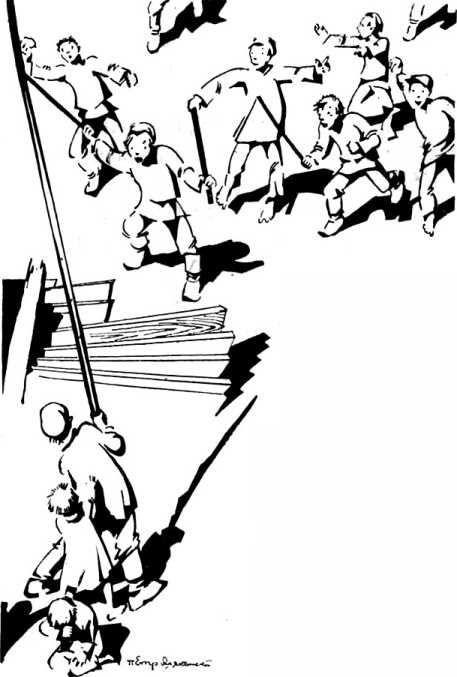 Не торопясь, подошел Колька к воротам, цыкнул на малышей, чтобы не совались, выбрал палку потяжелей, плюнул на ладонь и закатил, малыши только охнули и головы кверху задрали, а у самого дух захватило от радостного восторга…