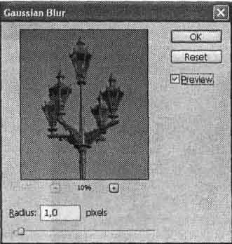 Рис. 15.7. Диалоговое окно работы с фильтром Gaussian Blur