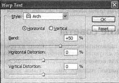 В любую область изображения можно добавить горизонтально или вертикально расположенный текст, а также создать выделение в виде контура текста. Для добавления надписи необходимо выбрать инструмент Туре (Текст), установить курсор в требуемой области изображения и щелкнуть левой кнопкой мыши. Текст вводится, как в обычном текстовом редакторе. Таким образом создается обычный текстовый слой. Если вместо одного щелчка мышью нажать левую клавишу, переместить курсор, рисуя рамку, а затем отпустить клавишу, можно создать текстовый блок. Можно изменять размеры этого блока, перемещая его границы. При помощи маркеров текстовый блок можно поворачивать вокруг маркера центра преобразования (вы можете переместить блокили центр преобразования при помощи мыши).СОВЕТ. К текстовым слоям применима команда Edit • Free Transform (Редактирование • Свободная трансформация), позволяющая изменять масштаб и форму выделенного объекта (фрагмента изображения, текста, векторного пути или формы).При создании надписи с помощью инструмента Туре (Текст) для нее автоматически создается отдельный слой.