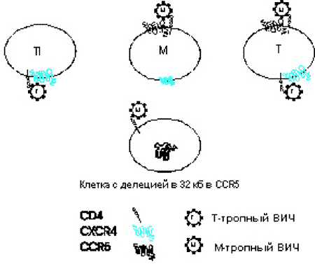 Патогенез ВИЧ определяется его стратегией, заключающейся, прежде всего, в необычайной длительности персистирования в организме человека, не сопровождаемое специфическими клиническими, проявлениями. Но длительность этого состояния, это ничто иное, как наше субъективное восприятие процесса, протекающего в иных временных измерениях. Патогенность для ВИЧ означает «захват власти» над геномом хозяина [Лем С., 1989], где он становится одним из его оперонов и наследуется в цикле деления клеток. Однако для того, что бы быть не узнанным иммунной системой человека, ВИЧ должен хорошо укрыться. Укрытие ВИЧ осуществляется, по меньшей мере, на двух уровнях — генетическом и клеточном. Генетическая маскировка вируса заключается в том, что его ДНК-форма (провирус), встроенная в геном хозяина, не имеет антигенов и для иммуноглобулинов недоступна [Медников Б.М., 1990]. На клеточном уровне ВИЧ не распознается иммунной системой благодаря тому, что: 1) зрелый вирион ВИЧ покрыт мембраной и гликопротеидной оболочкой из организма хозяина (на собственную оболочку у него не хватает «средств», т. е. генов), а поэтому они не могут быть антигенами; 2) те немногие участки аминокислотных последовательностей гликопротеидов ВИЧ — gp120 и gp 41, которые не экранированы и могут быть антигенами, сильно вариабельны (петлеобразный участок gp120); 3) кроме Т-хэлперов ВИЧ проникает и в другие клетки — как содержащие на своей поверхности рецепторы CD4 (глиальные клетки мозга), так и способные к фагоцитозу, в первую очередь моноциты в макрофаги. Именно последние захватывают комплексы ВИЧ — антитело. Поэтому иммуноглобулины, в конечном итоге, не подавляют инфекцию, а способствуют ей [Медников Б.М., 1990]. Если для существования ВИЧ в хозяине ему достаточно интегрироваться с его геномом, то для смены хозяина он должен воспроизвести свое потомство и найти наиболее эффективный для своей стратегии паразитизма механизм передачи. Т. е. он неизбежно должен воспользоваться ресурсами своего хозяина, а, следовательно, повредить его, не обладая теми мощными арсеналами генов, которыми располагают возбудители быстрых инфекций. Клинически повреждения при СПИДе проявляется столь большим количеством патологических симптомов, что объяснить их только действием малочисленных продуктов генов ВИЧ (как это мы делали в отношений ВНО), не удается. Также трудно свести всю обнаруживаемую патологию к последствиям паразитизма многочисленных возбудители сопутствующих инфекций. Наиболее ярким показателем патогенного воздействия вируса является прогрессивное уменьшение числа CD4+ Т-лимфоцитов крови — основная причина постепенного угнетения иммунной системы [Лысенко А.Я. и др., 1996]. ВИЧ разрушает Т-клетки непосредственно, когда размножается в них, и когда размножившиеся частицы вируса покидают клетку, разрушая клеточную мембрану. Нo ВИЧ может уничтожать CD4+ Т-лимфоциты и опосредовано. На поверхности зараженной клетки располагается вирусный белок gр120, обладающий высоким сродством к рецепторному белку поверхности CD4+ Т-лимфоцитов (CD4). Из-за этого нормальные CD4+ Т-лимфоциты присоединяются к инфицированным клетками и сливаются с ними, образуя нежизнеспособную многоклеточную структуру — синтиций. Вместе с пораженными Т-лимфоцитами гибнут все здоровые, включившиеся в синтиций. Также ВИЧ вызывает нормальный кле