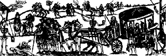 Рис. 62. Бегство лондонцев из города при первых вспышках чумы 1665 г. Эпидемия чумы в Лондоне началась на фоне экономического процветания страны и роста материального благополучия ее населения. Население города какое-то время даже не могло поверить, что к ним вернулась чума. Власти столицы сделали все возможное, чтобы остановить эпидемию, однако они оказались перед ней бессильны. Эпидемия, собрав свою смертельную жатву, завершилась сама (рисунок из книги Д. Дефо, 1732)