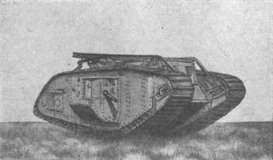 Английский танк марки «М-V»; передняя часть — справа.