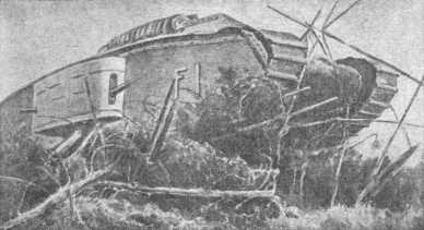 Первый образец новой машины появился в конце марта 1917 года. По сравнению с неуклюжими «Шнейдерами» и «сен-шамонами» танк «Рено» имел складную, можно сказать изящную внешность. Нижняя часть танка, где проходили гусеницы, напоминала по форме рыбу карп: впереди была тупая, сзади суживалась. Корпус невысоко поднимался над гусеницами. В передней части возвышалась бронированная башня с пулеметом. Эта башня была замечательной новостью в конструкции танков: она могла свободно поворачиваться во все стороны, — следовательно, пулемет мог давать круговой обстрел, что очень важно в бою. Сорокасильный четырехцилиндровый мотор помещался в задней части корпуса. Весил танк всего шесть с половиной тонн. Скорость, однако, была у него небольшая — восемь километров в час по ровной местности. По размерам танк «Рено» был почти равен нашему современному автомобилю «М-1». В задней части танка находилось съемное приспособление — хвост, — позволявшее перебираться через уширенные окопы. Обслуживали машину только два человека — водитель и пулеметчик. Несмотря на то что испытания новой машины дали благоприятные результаты, военное министерство еще долго раскачивалось, прежде чем сделать крупный заказ на танки «Рено». Они начали поступать во французскую армию лишь в мае 1918 года. Англичане тоже создали более легкий танк, обозначенный маркой «А». По виду и свойствам он сильно отличался от танка «М-IV». Корпус танка «А» был низкий, прямоугольный; в задней части машины находилась броневая башня с тремя пулеметами; башня не вращалась. Гусеницы не обхватывали корпус, а проходили сбоку, сильно выдаваясь вперед и назад. Каждую гусеницу двигал отдельный сорокапятисильный мотор конструкции инженера Тейлора. Оба мотора помещались в передней части корпуса. Управлял танком «А» один человек. Для поворота вправо или влево достаточно было замедлить работу соответствующего мотора. Кроме водителя, в танке находились еще два пулеметчика. Скорость танка по ровному месту достигала тринадцати километров в час. Танк «А» был очень поворотлив. За быстроходность и поворотливость его прозвали гончей собакой, по-английски «уиппет». По имени конструктора мотора танк «А» часто называют еще «Тейлором». Впервые «тейлоры» появились в бою весной 1918 года. К этому времени значительно был усовершенствован и танк «М-IV», превратившийся в модель «М-V». Основным было введение механизмов, облегчающих управление машиной.