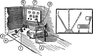 Одновременно с обучением водителей идет подготовка и башенных стрелков. Их задача — метко и быстро поражать противника пулеметным или артиллерийским огнем. Чтобы добиться точной стрельбы, молодые танкисты должны много стрелять. Тут опять встает вопрос о сбережении народного достояния. Каждый выстрел из пушки стоит денег, труда. Чем больше обучающиеся будут стрелять, тем больше будет расход. К этому нужно добавить, что от стрельбы изнашиваются и сами пушки. Это еще больше увеличивает расход. Как же сделать, чтобы танкисты стреляли метко, а обучение их стоило бы подешевле? Тут на помощь пришла светопушка, остроумнейшее изобретение Лобанова, старшего лейтенанта одной из воинских частей Московского военного округа. Светопушка «стреляет» светом. Это обыкновенная танковая пушка, но только немного переоборудованная. В ее казенной части помещена маленькая электрическая лампочка, а в конце дула — двояковыпуклое стекло (линза). Лампочка находится в главном фокусе стекла, поэтому свет выходит из пушки параллельным пучком. Обычно лампочка в пушке не горит. Наводят светопушку, как и всякую другую, но снаряд в нее, разумеется, не вкладывают. Однако на спусковую педаль нажимают, и светопушка дает выстрел. Он совершенно беззвучен. В цель летит не граната, а… световой зайчик. По положению зайчика можно судить о меткости выстрела. Выстрел из светопушки стоит ровно столько, сколько стоит горение маленькой лампочки в течение одной-двух секунд, какую-нибудь тысячную долю копейки. Стрелять из светопушки на расстояние в пятьсот, тысячу метров и более нельзя — светового зайчика не увидишь, поэтому для светопушки устраивается игрушечное стрельбище — миниатюрный полигон в самом тире. На полигоне расставлены игрушечные танки, пулеметы, пушки. Это цели. Танки движутся в разные стороны с переменной скоростью — то быстрее, то медленнее. Иногда они скрываются за холмами или в овражке. Потом появляются на несколько секунд и снова исчезают. Меняют свое местоположение также и пулеметы и пушки. То они займут позицию где-нибудь на окраине леса или за кустом, то опять скроются. Светопушка установлена в башне, такой, как у настоящего танка. Только это не настоящая башня из брони, она сделана из дерева и фанеры. Это макет. В середине башни-макета находится башенный стрелок-новичок. Он с жаром охотится за танками, пушками и пулеметами «противника» и усердно старается поразить их. Удается это не сразу. Новичок, волнуясь, поворачивает башню, наводит орудие, пользуясь прицельными приспособлениями, наконец нажимает педаль. Все было сделано как будто правильно, а зайчик вместо танка угодил в ветряную мельницу. В тире раздается веселый смех товарищей, таких же новичков. Башенный стрелок смущен. Его щеки вспыхивают ярким румянцем. Не смеется только командир. Спокойным голосом он говорит: — Не волнуйтесь, товарищ Сидоров. Производите наводку медленнее и внимательнее. Скорость стрельбы придет потом. Башенный стрелок повторяет упражнение. В третий или в пятый раз он наконец поражает противника — световой зайчик ложится прямо на танк. — Ай да Сидоров! — одобряют присутствующие. Сидоров с довольным видом вылезает из башни. Его место торопится занять следующий. Каждому очень хочется поскорее забраться в башню и самому пострелять. Каждый думает: «Вот я Сидорову нос утру