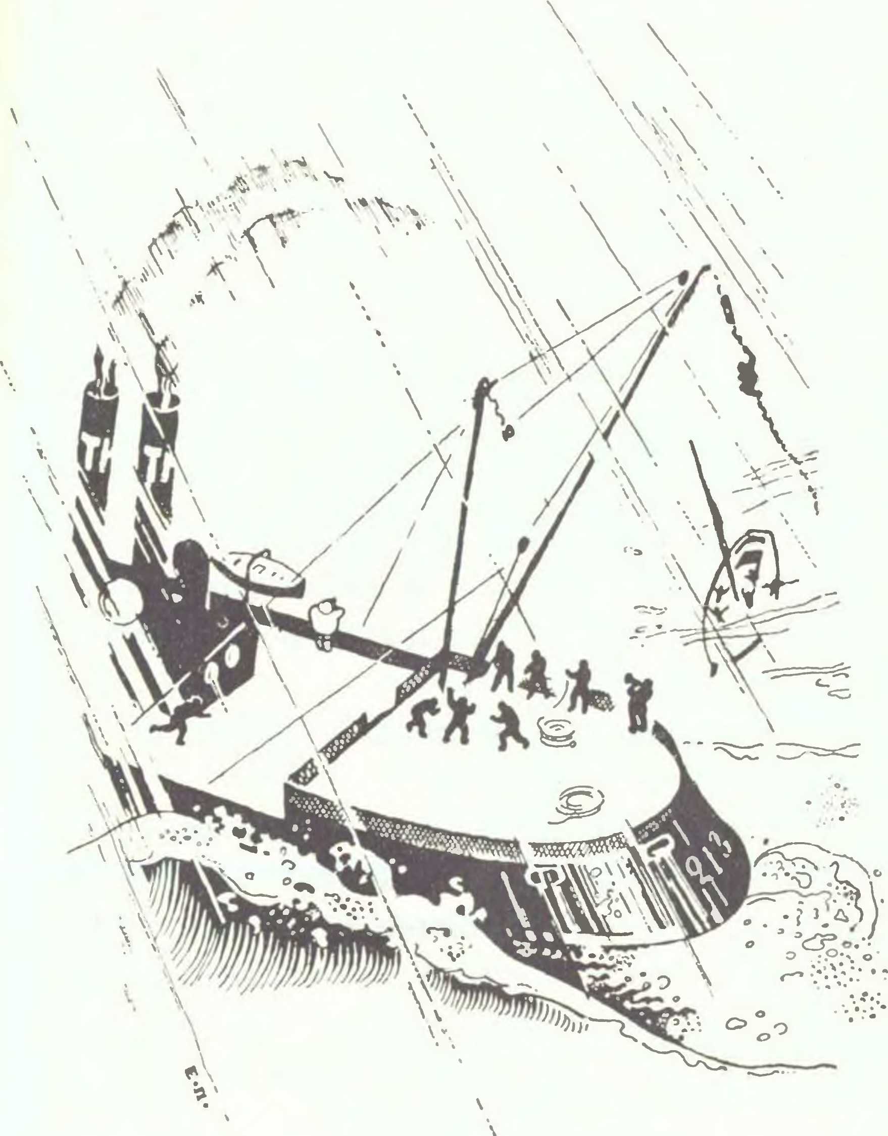 Тралеру № 213, приписанному к Гулльскому порту, не приходилось бояться шторма. Это тралер так называемого мурманского типа, специально приспособленный к работе в Ледовитом океане: с высоко поднятым баком и кормой он общей формой своего корпуса отдаленно напоминал кургузые каравеллы, на которых Колумб совершил первое плавание через Атлантический океан. Толстый Джонни тем не менее был обеспокоен штормовым предостережением, принятым Джимми по радио. Насторожилась и вся команда, когда шкипер отдал приказания, которые показывали, что надо ожидать шторма. И Толстый Джонни и команда его знали, что за время войны корабль порядочно потрепался. Пять лет под ряд бессменно № 213 ходил в паре с другим таким же тралером от Нордкапа до Иоканги, сторожа северный морской путь из Темзы к Северной Двине. Капитального ремонта своему судну Толстый Джонни не сделал: только по снисхождению Ллойда к владельцам судов из-за трудных дел после войны подобным кораблям разрешалось плавание… Команда Толстого Джонни ждала, что после штормового предупреждения шкипер прикажет свернуть трал и пойдет в Гулль. Но трюмы тралера были только до половины налиты свежей рыбой. Цены на рыбу стояли в Гулле высоко. Толстый Джонни был жаден. Команда и рыбаки по контракту должны были работать в каждый рейс десять дней, какова бы ни была погода. Поэтому, не взирая на то, что норд-ост разыгрывался шквалами с дождем и снегом, Толстый Джонни повернул в виду берега снова курсом на полночь. Трал работал. Тралер № 213 стал в волнах похож на синего кита, когда он играет в бурную погоду. Поморская шкуна, идя с зарифленными парусами из Вардэ в Архангельск, видела, как тралер зарывается в крутой волне… Джимми попрежнему носился по трапам полируя поручни рукой: гулльские моряки не теряют аппетита и в штормы. Однако, некоторые из команды теряли самообладание… Сменяясь с вахты, весь облепленный мокрым снегом, машинист палубной лебедки сказал коку Джимми: — Выпей, мальчик, стаканчик пунша — ты совсем зеленый. Это оттого, что ты нам давно не читал, Пелл-Мэйль"… Не успел Томми прибавить, как хотел: — Ты сейчас упадешь. Джимми покачнулся, все у него в глазах позеленело, и стакан и бутылка полетели бы из его рук на пол кают-компании, если б их не подхватил Томми. Он подхватил и Джимми, посадил его на скамью и влил ему в рот глоток спирта. Джимми очнулся… Туман в глазах пропал… Томми весело подмигнул коку, выпил и сказал: — Привыкай, старина… Так никаких новостей? — Толстый Джонни завладел ключом!.. — Старая йоркширская свинья… Хорошо, — он хозяин корабля, но он не хозяин эфира — радио принадлежит всем… Мы это посмотрим, мальчик. Тралить в такой шторм было невозможно; трал убрали; люки наглухо закрыты; но № 213 идет курсом на полночь. Толстый Джонни надеется, что шторм минует… Было похоже на бунт, когда в рубку шкипера явился зеленый от качки Джимми, а с ним в замасленной куртке Томми. Джимми сказал дрожащим голосом: — Мистер Найт, позвольте ключ от радио. — Что? — переспросил шкипер… — Да, Джонни, — сказал Томми, — дай мальчику ключ. Пусть послушает, нет ли в мире чего новенького. Мальчик совсем позеленел от скуки… Джон Найт — или что то же Толстый Джонни — сказал просто и кратко: — Нет. И вынув из ящика стола револьвер, положил его в карман куртки… — Нет? — переспросил Томми. — Нет. — Пойдем, мальчик. 