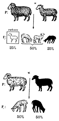 Летальный ген у ширази (рис. Вверху). Случай, когда все ягнята выживают.